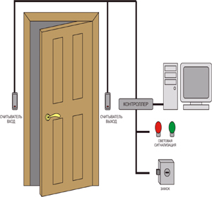Одним из самых простых примеров внедрения СКД может послужить всего лишь одна дверь для входа и выхода из которой необходимо преложить електронный ключь к считывателю.